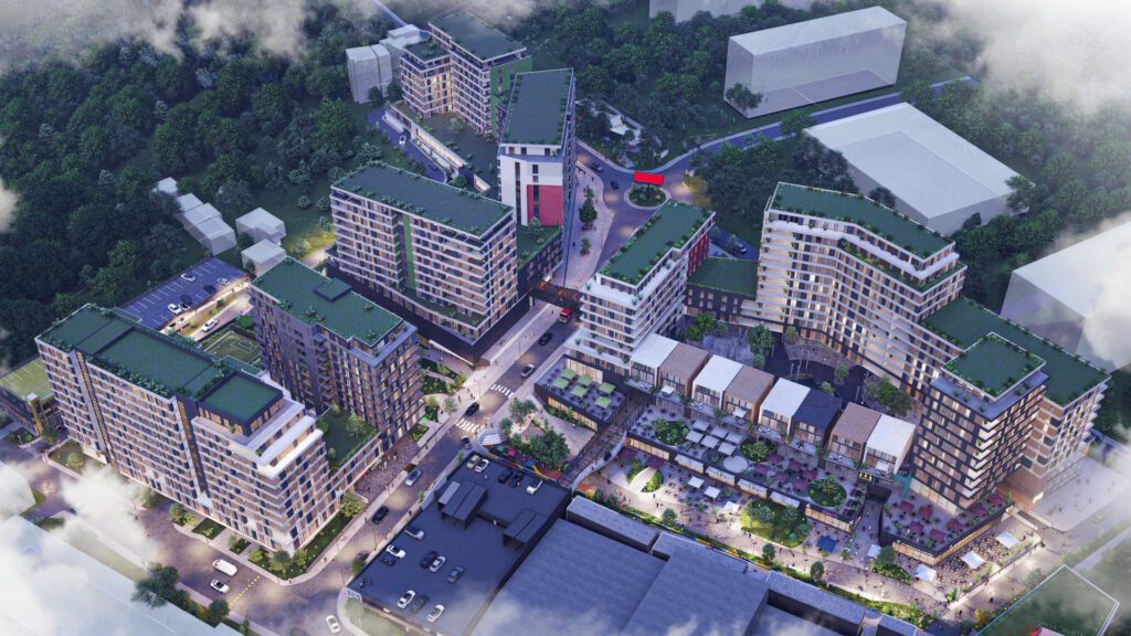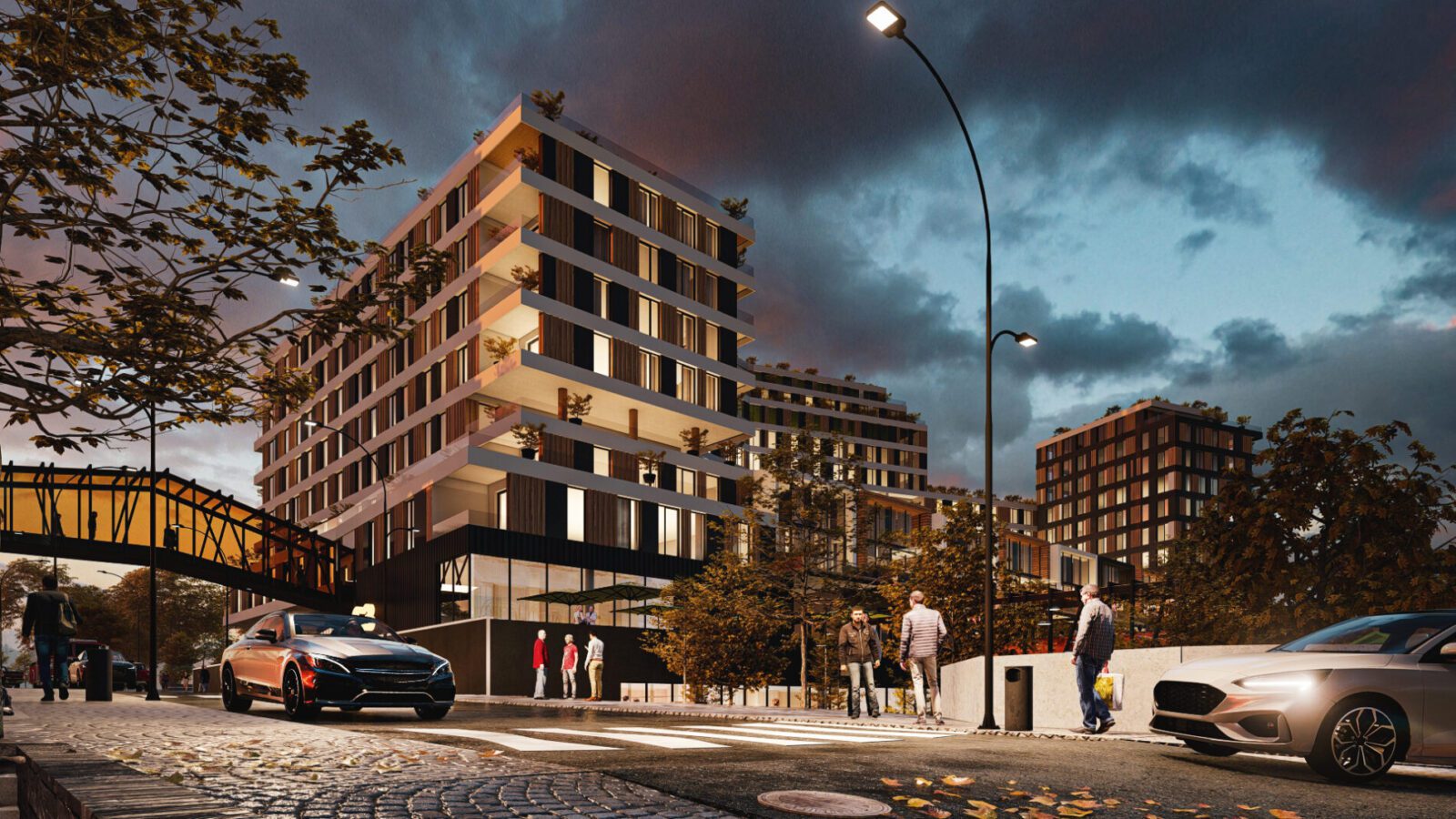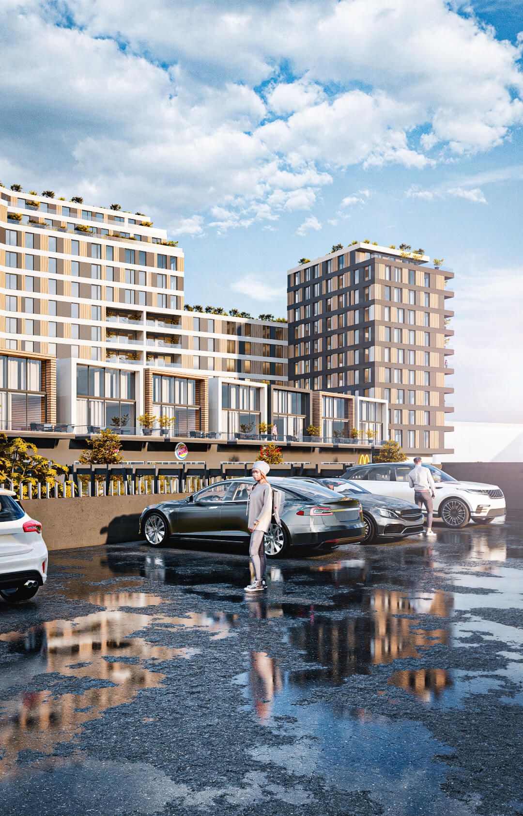 Fasada eksklusive ventiluese me cilësi të lartë si në pjesën afariste ashtu dhe atë rezidenciale, ballina të mëdha të dritareve me kornizë dhe dizajn modern të qëndrueshëm, terasa dhe dysheme ekologjike antistatike nga druri, i japin jetë kompleksit. Kurse kulmet e rrafshta të mbuluara me gjelbërim, kontribojnë në përmirësimin e mikroklimës.