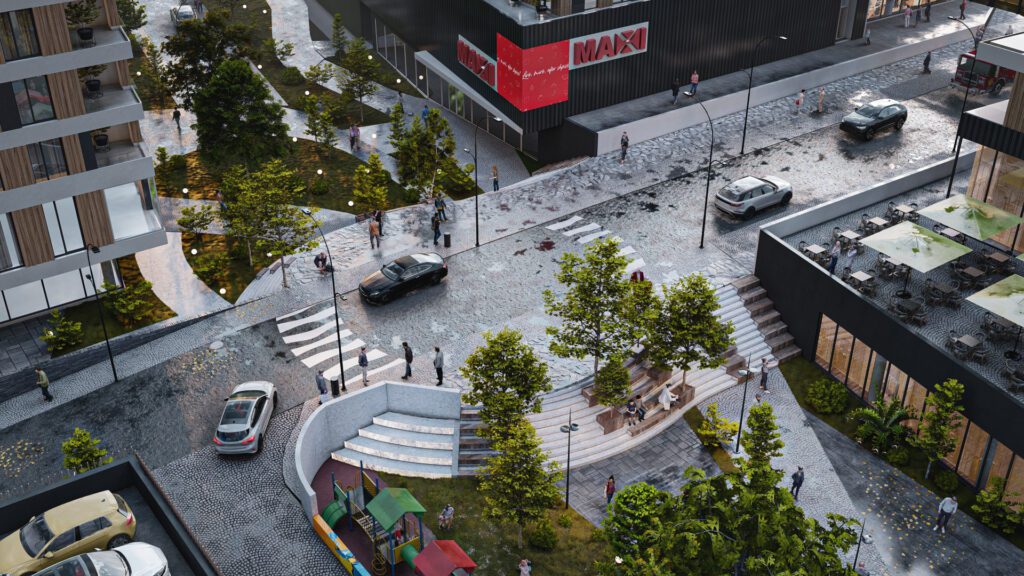 Monopol City sjell qendrën e re urbane të Qytetit të Gjilanit, me pjesën rezidenciale të mbështetur me Qendrën Tregtare, Tregun e gjelbër, Kopshtin për fëmijë, shkollën, qendrën shëndetësore, sallën e sportit, sallën e fitnesit, amfiteatrin si dhe parkingjet e nevojshme si për banorët dhe për vizitorët e komplekist. Të gjitha këto përmbajtje mundësojnë një komunikim të veçantë të rezidentëve dhe të vizitorëve përmes bulevardit dhe urave që janë të planifikuara në detaje, të shtrira dhe të lidhura me hapësira publike dhe të inkorporuara në zona të jashtme gjelbëruese që ndërlidhen mes veti pa interferuar në privatësinë e rezidentëve, por në të njejtën kohë duke ofruar mundësi për biznes dhe argëtim në nivel dhe kërkesa të kohës.